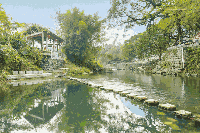 在黄姚古戏台集中,跟随领队的脚步以及景区的讲解员,细细品味。我们进入古镇,穿过门楼,门里门外皆为石板街。这里都是上百年的老街,块块石板,泛出亮光,平滑如镜。来到带龙桥,此处风景幽美,吸引了众多镜头和画者,电影《面纱》就曾在此取景。一切的景色画面,若隐若现,仿佛穿越时空,这种古朴、清凉、悠远。古镇上有好几处跳跳桥,也是镇上人们的“交通要道”,也是驴友的摄影好去处。