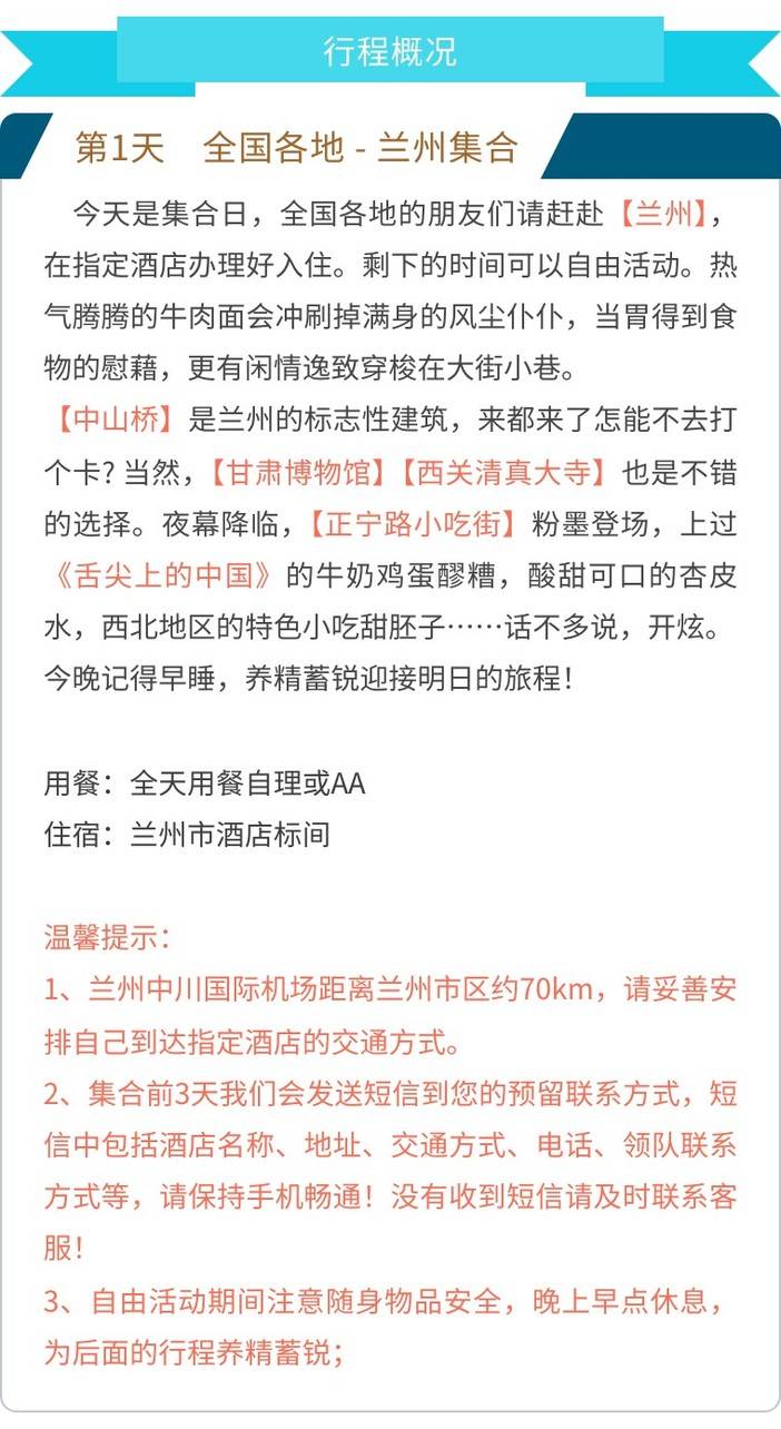 【集合地点】兰州市区指定酒店(凭“团名+姓名”报到入住)