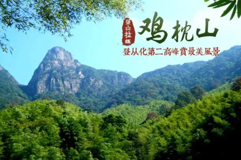 鸡枕山位于从化市良口镇,位于流溪河国家森林公园第一高峰,是该森林公园的最高峰。海拔1146.7米,高高屹立在森林公园东面,距公园管理处10公里。每当旭日东升之时,霞光万道,树木披金,万物苏醒,朝气蓬勃,气象万千,是观日出的最佳景点。鸡枕山山路崎岖,植被茂盛,景色美丽,沿山间的崎岖小道攀登鸡枕山,公园奇观尽收眼底。