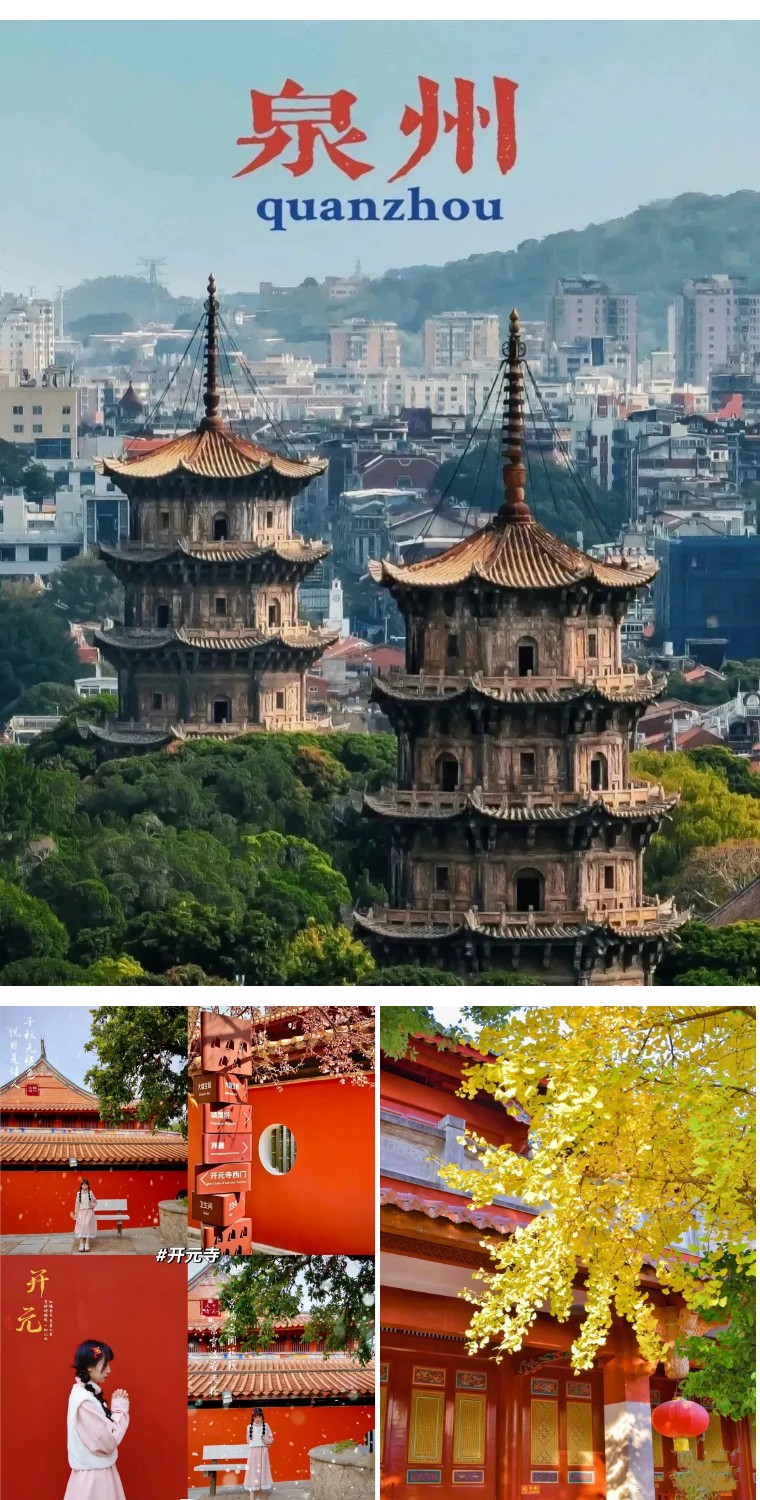 推荐线路:洛伽寺(海上佛国)--梧林古村落(小娘惹)--打卡热门城市IP泉州:开元寺东西塔/西街/钟楼/洛阳桥/关岳庙/中山路/花巷/木偶戏/南少林等