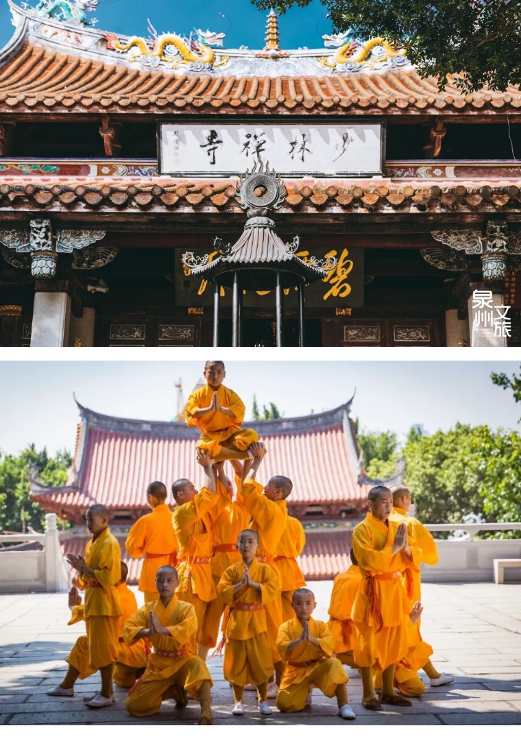 泉州少林寺,又名镇国东禅寺,俗称南少林,位于泉州清源山东麓,相传为曾救唐王十三棍僧之一的智空入闽所建。至今已有上千年历史。经历几度兴废,史迹犹存。(可自行打车前往参观,都离得比较近)