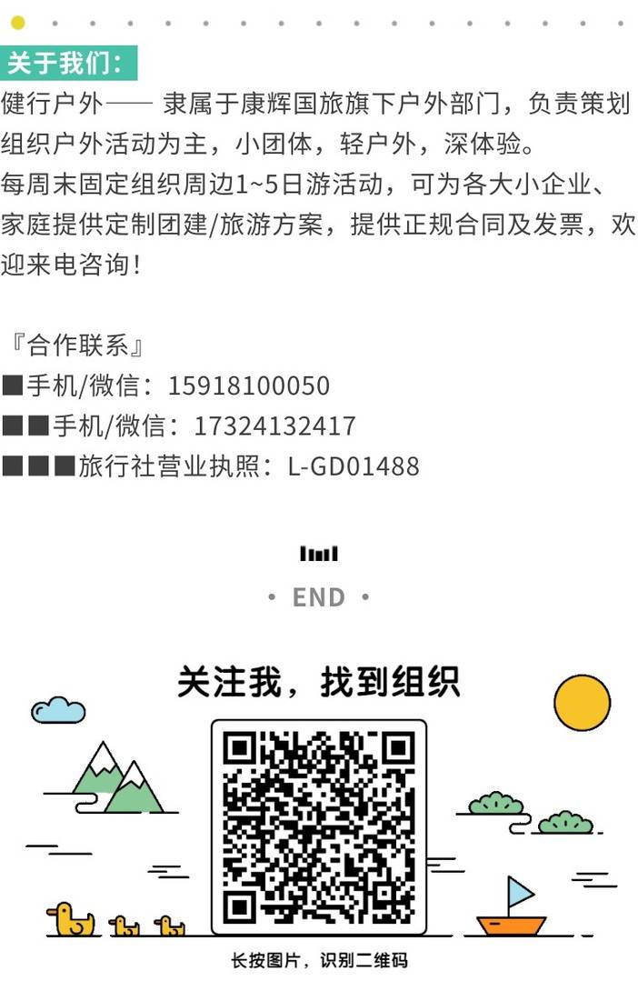 注意1:如果遇到大雨/堵车(节假日高速车流量比较大)/封路等突发原因,领队根据现场情况对行程进行调整,一切以安全、顺利为原则,报名请知悉,谢谢理解和配合,报名即默认接受我们的安排,届时不接受由此引起的投诉和相关费用退还。