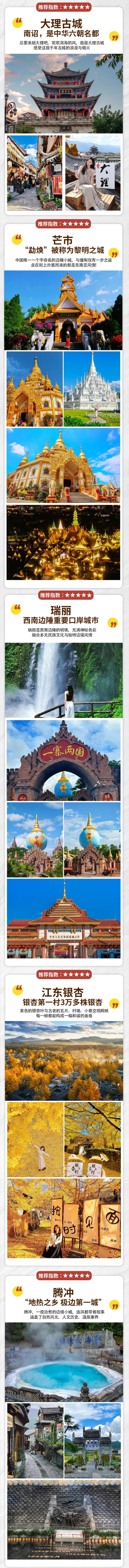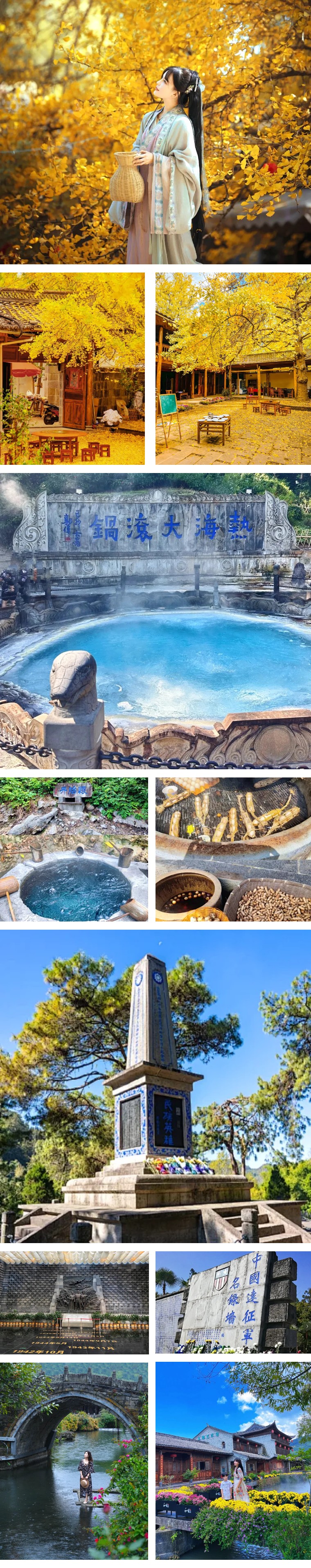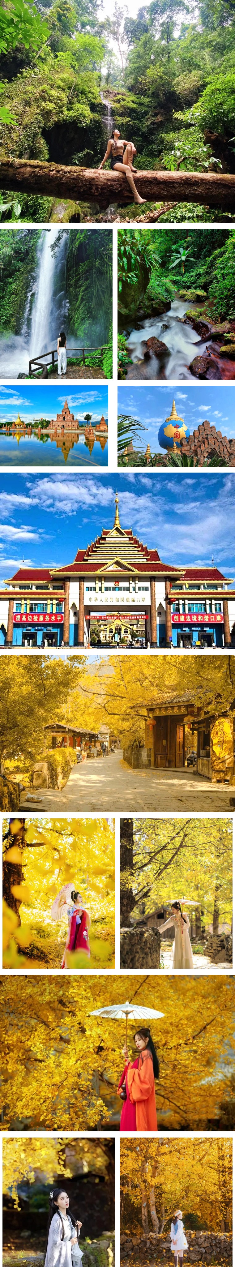 2、【景点及门票】:芒市勐焕大金塔门票、银塔门票+往返电瓶车、瑞丽莫里瀑布门票、一寨两国门票、姐告口岸、银杏村门票+单程电瓶车、热海景区门票、滇西抗战纪念馆、和顺古镇套票、澡堂会,老姆登、独龙江、探访纹面女、丙中洛(雾里村、秋那桶、滇藏界碑)、飞来寺观景台、金沙江大拐弯、纳帕海、沙溪古镇、先锋书局、巍山古城、南涧土林、无量山樱花谷门票。
