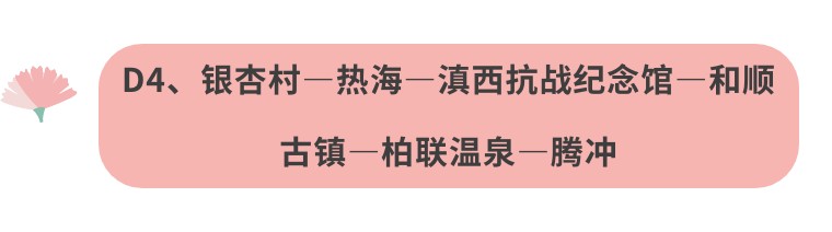 接着午餐后出发前往【和顺古镇】,参观拍摄著名的和顺古镇,(艾思奇故居、龙潭、元龙阁、和顺图书馆、文昌宫、和顺民居);亲自找找“北爱的拍摄地”,感受当时的场景。这个地处云南边陲的古镇已有600多年历史,这里没有其它古镇的夜生活,青山绿水和清淳民风,满是世世代代人留下的生活印记。非常适合旅居,甚至连《国家地理》都评它为“一生必去的古镇”。这就是和顺的魅力所在。我们为您贴心准备了奢华和顺柏联温泉SPA,让您放松每一个细胞。结束后前往腾冲市酒店入住。