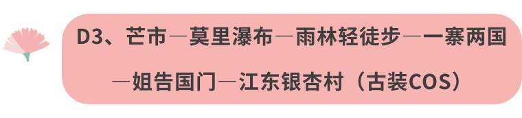 【古装COS】:银杏村+樱花谷,两地特别安排体验古装COS,换上古装,方便您COS以及创作拍摄留恋。