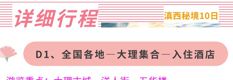 1、不包含全国各地到大理集合和大理解散返回的交通费用,自行选择交通工具,提前预定通常折扣都会很低;