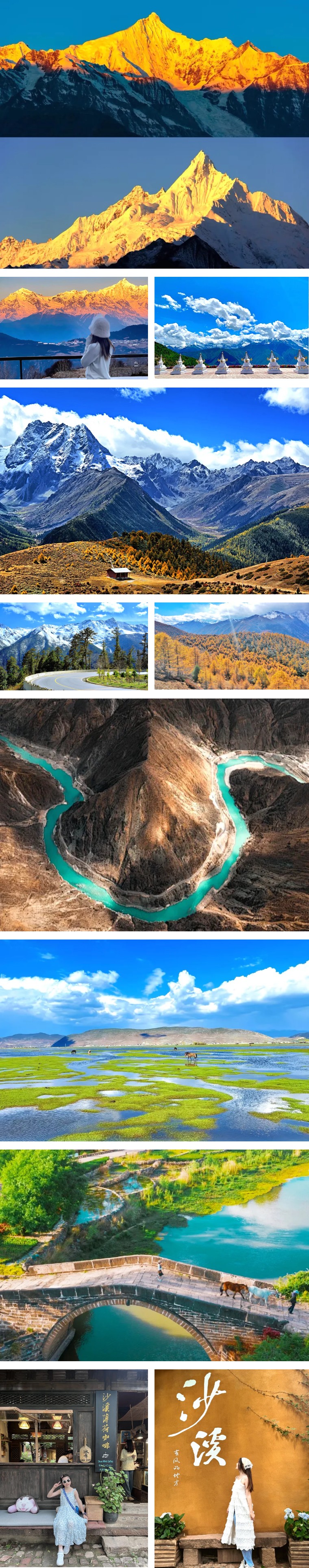 游览重点:梅里日照金山、白马雪山垭口、飞来寺、金沙江大拐弯、纳帕海、沙溪古镇