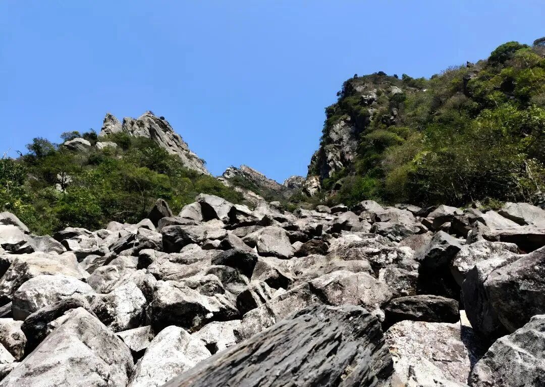 中段:乱石坡的挑战,前往大圣山登顶需要经过乱石坡和攀爬,有一定危险性。这里的地形让人联想到龙斗峰的险峻和茶岩顶的奇石。怪石嶙峋,路径崎岖,需要手脚并用,是对体能和意志的双重考验。
