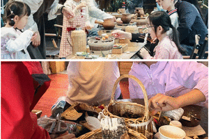 今早起床后, 我们前往手工作坊,大朋友小朋友一起合作,制作一份来自大自然的礼物,指尖摩挲着树皮,感受白桦树皮的纹理,用秋叶,松针,松果和干花作为装饰,制作属于亲子间独一无二的新疆记忆,把大自然的礼物带回家。
