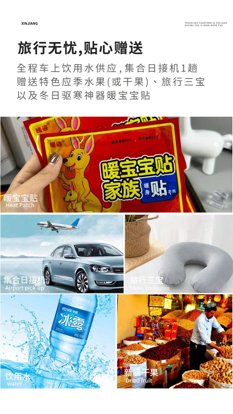 4、赠送旅行三宝,不限量暖宝宝/巧克力/牛肉干提供
