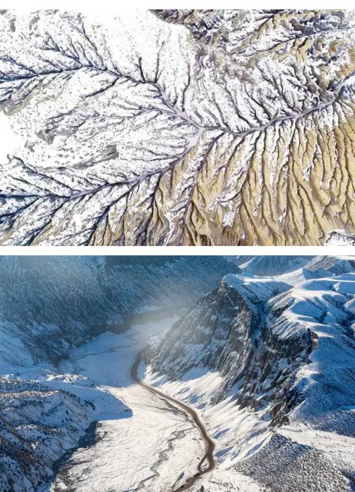 玩够了开始下山,在喀纳斯蜿蜒的山路上行驶,两侧便是已被白雪覆盖的喀纳斯河。喀纳斯河在山谷中蜿蜒,造就了卧龙湾、月亮湾、卧龙湾等秀丽绝伦的水湾河滩景点,河的上源就是有水怪出没的喀纳斯湖。景色秀丽的喀纳斯三道湾,随着气温降低也结上了厚厚的冰层,风景也从五彩斑斓的西方油画转换为传统水墨山水画。我们第一站首先停靠卧龙湾,当地人称锅底湖,是取其形状象锅底而得名,卧龙湾河湾内发育两个小心滩,像两个巨大的脚印。传说是神仙难以抗拒美景的诱惑,下凡赏景时所留。