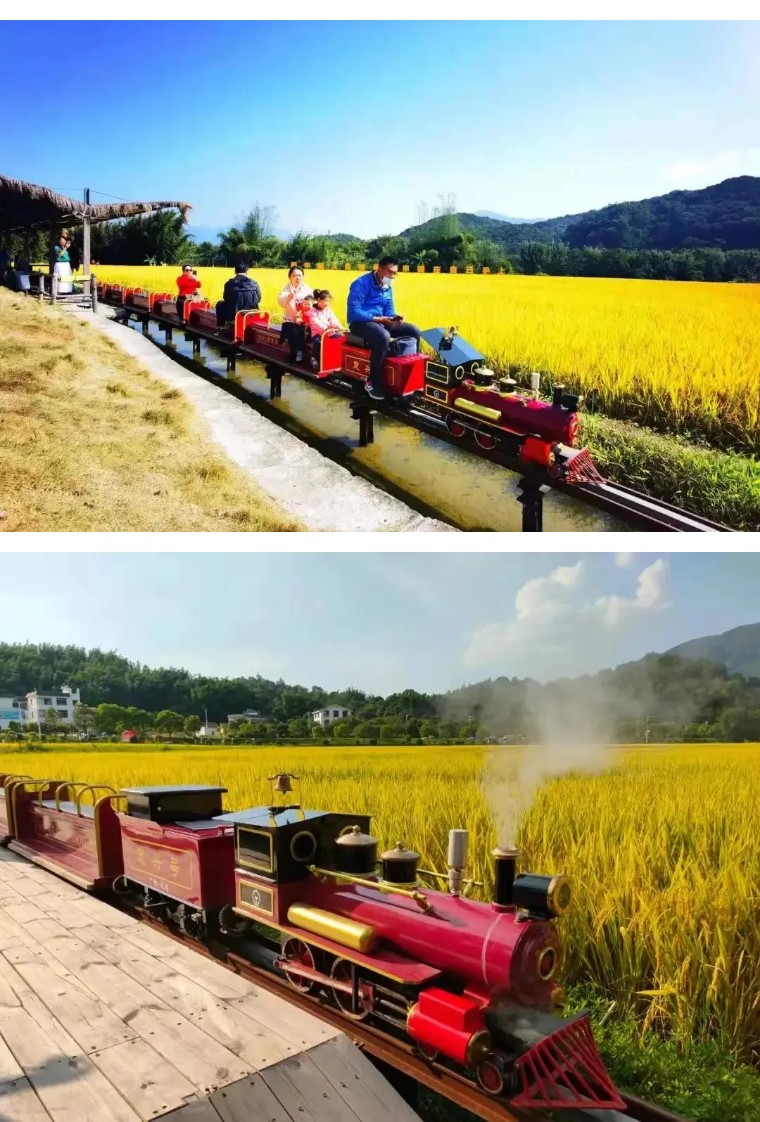 10:00 左右到达【从化米埗小镇】,欣赏金黄的稻田,穿梭其中的小火车,风拂过稻田,沙沙作响,静静的坐在傍边,仿佛自己就是宫崎骏电影里那些追梦闪光的人;