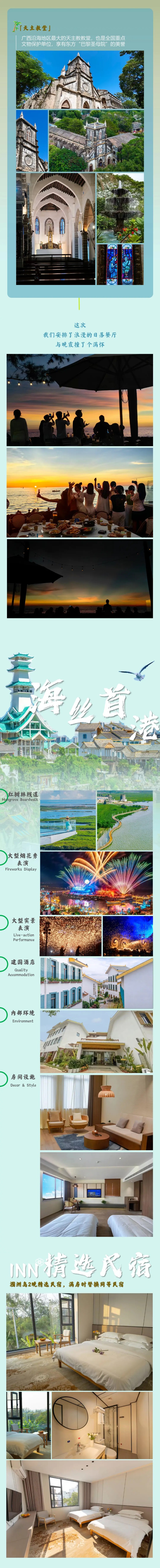 3、入住北海海丝首港建国饭店1晚,涠洲岛民宿2晚(双人间,单人住需补房差);