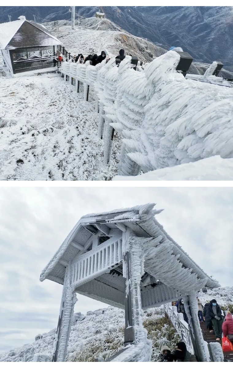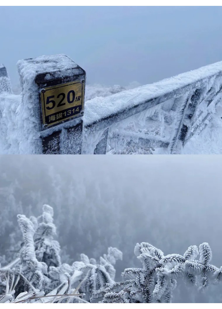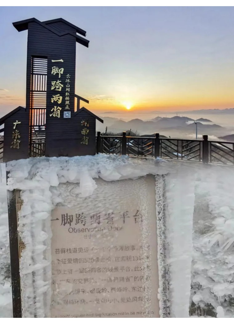 粤湘一脚踏两省有个景区,可赏雾凇冰挂观云海,被称“南方雪乡” ,它就是云冰山。