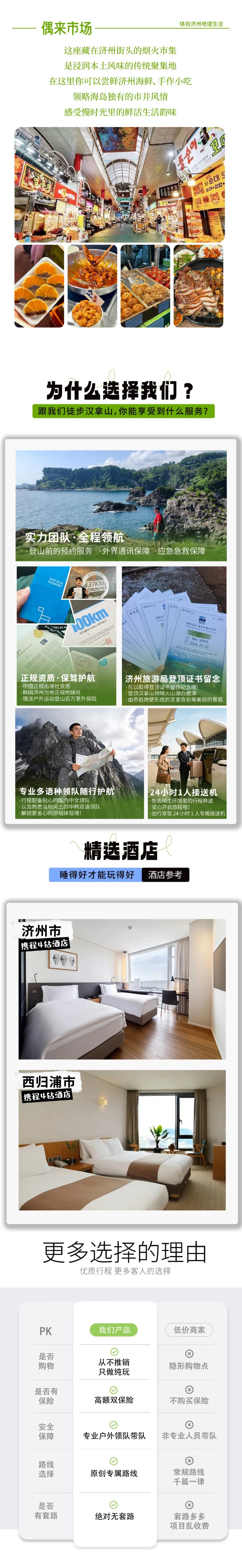 住宿:两晚济州市四钻酒店、两晚西归浦四钻酒店;