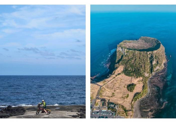 一早出发前往城山浦港,坐上渡轮十几分钟就能上牛岛了,自行车环岛骑行(骑行时间2个多小时就能环岛一圈),济州岛的自行车都是带助力的,所以骑起来非常轻松,一路走走停停。