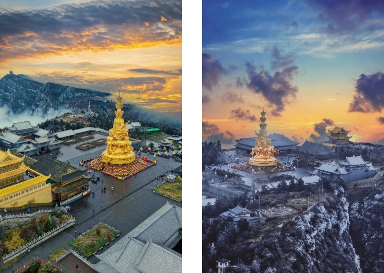 14:30-17:00:乘车前往峨眉山市(车程约1.5小时)。抵达后,您可以先前往峨眉山景区门口的报国寺参观。报国寺是峨眉山的第一座寺庙,也是峨眉山佛教协会所在地,寺内建筑雄伟,有弥勒殿、大雄殿、七佛殿等,寺内的佛像雕塑精美,壁画丰富多彩,体现了峨眉山佛教文化的深厚底蕴。您还可以在寺庙周边的广场上散步,感受峨眉山的佛教氛围和自然风光。