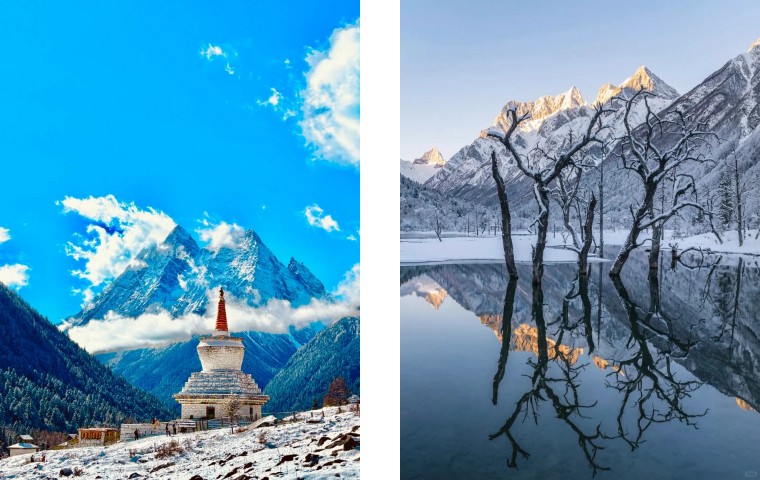 四姑娘山:被誉为 “蜀山之后” 与 “东方阿尔卑斯”,地质奇观与藏寨烟火共生的立体画卷。