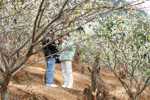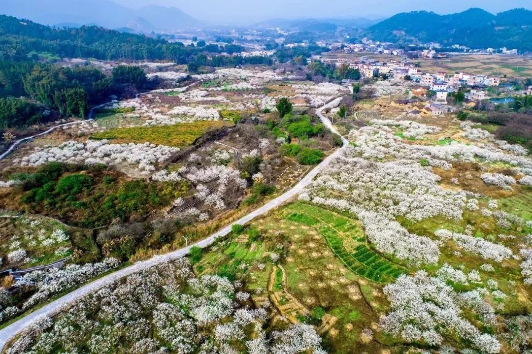 ①新春之际,李花先后争相开放,星星点点,桂峰山脚如同白雪覆盖的仙境