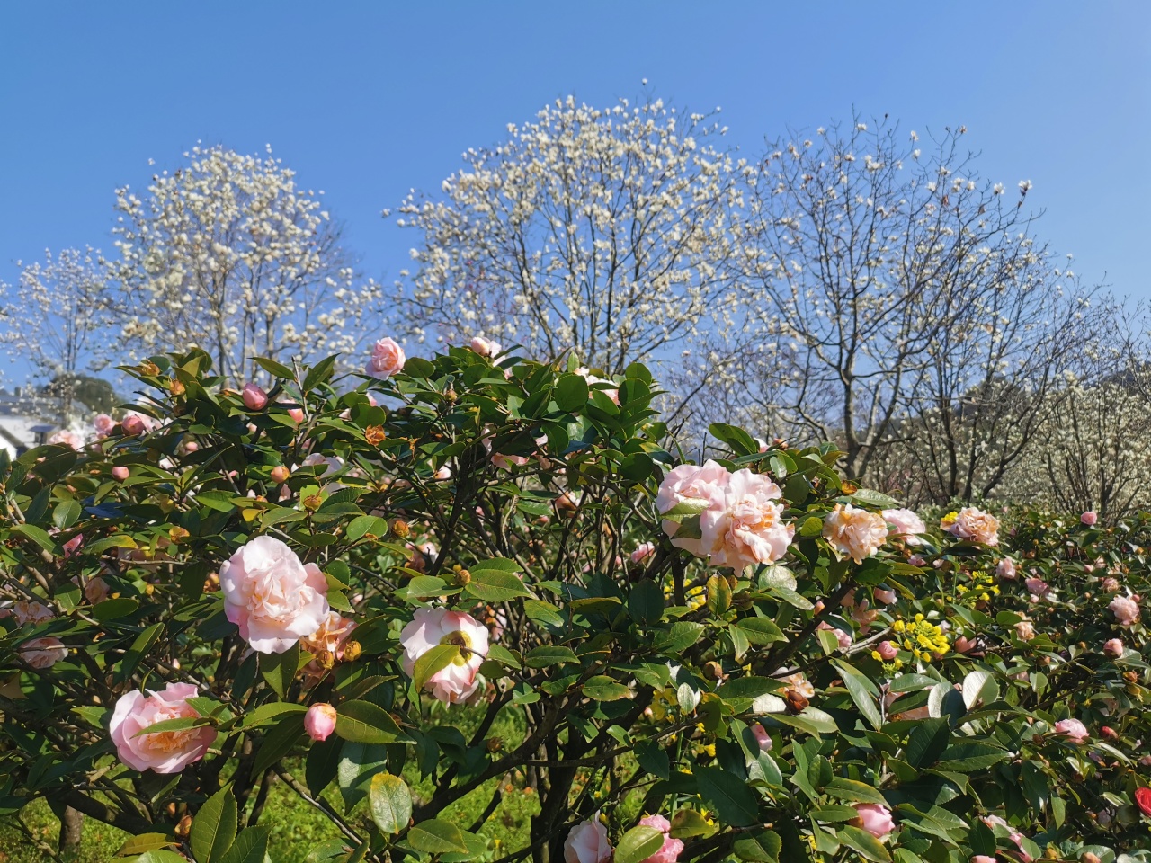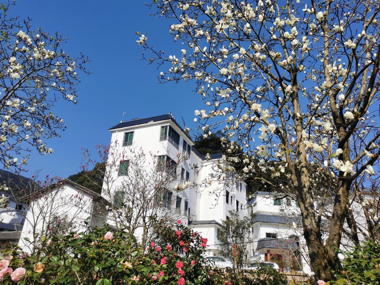 每逢茶花绽放之时,也是玉兰花盛开之际