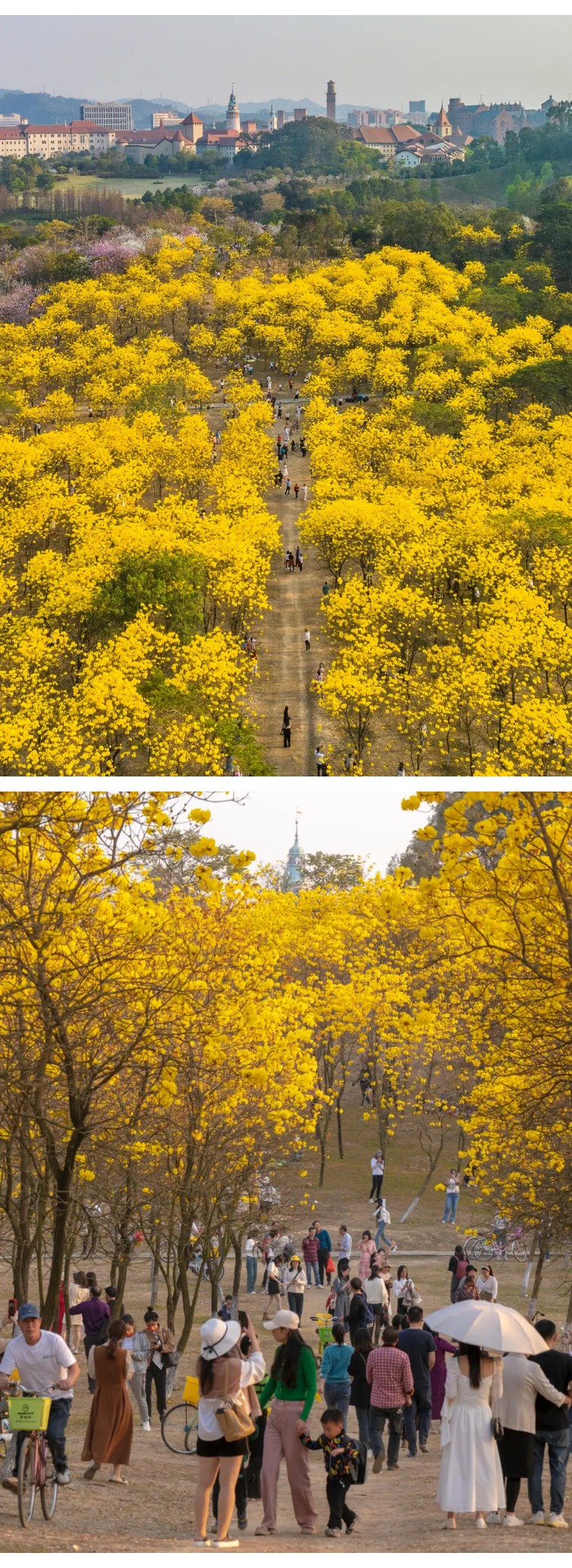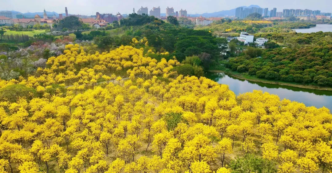 但是松山湖的黄色风铃花才刚刚进入盛花期