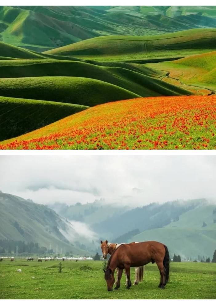 今早我们前往寻找红花,伊犁是天山红花的故乡。霍城县的三宫乡,满江沟,大西沟乡,萨尔布拉克镇这几个地方每年5月各处的天山红花竞相开放,鲜红似火的花朵在绿茵茵的草原上争先怒放,草原、红花、雪山和成群的牛羊相映成趣,染红了塞外江南新伊犁红红火火的五月。今天我们就驱车前往寻找,根据出发时间选择最漂亮的赏花地,红红的花远处有层叠的大东沟山脉和清晰可见的科古尔琴雪峰,碧蓝的天和多变的云,真是美爆你的双眼,浸染你的心田!