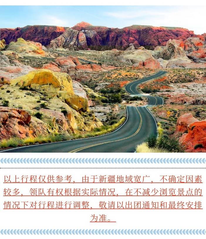 温馨提示:新疆的红花,通常在4月底5 月初开放,由于花期受气温以及天气变化影响较大,每年花期不固定,无法确保最佳花期,不同地方花开时间不同,我们会尽力寻找红花来满足大家的拍摄,敬请谅解!也可能因为天气原因会涉及行程的微调,届时请配合导游工作。