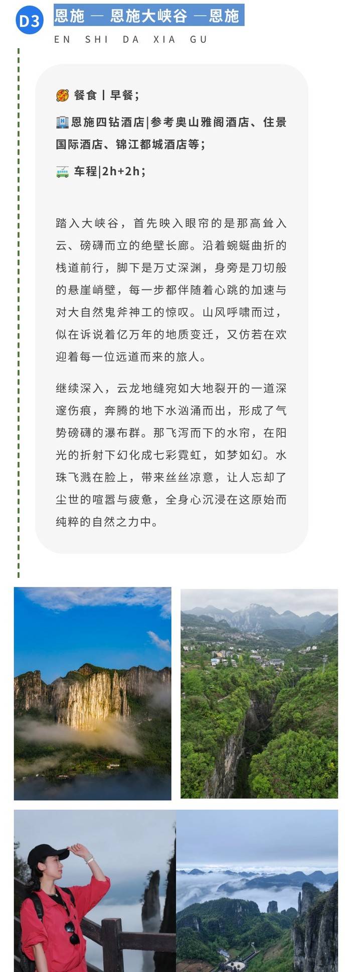 3、景区非必消项目,如恩施大峡谷上行索道105元、梭布垭石林山海泾68元等;
