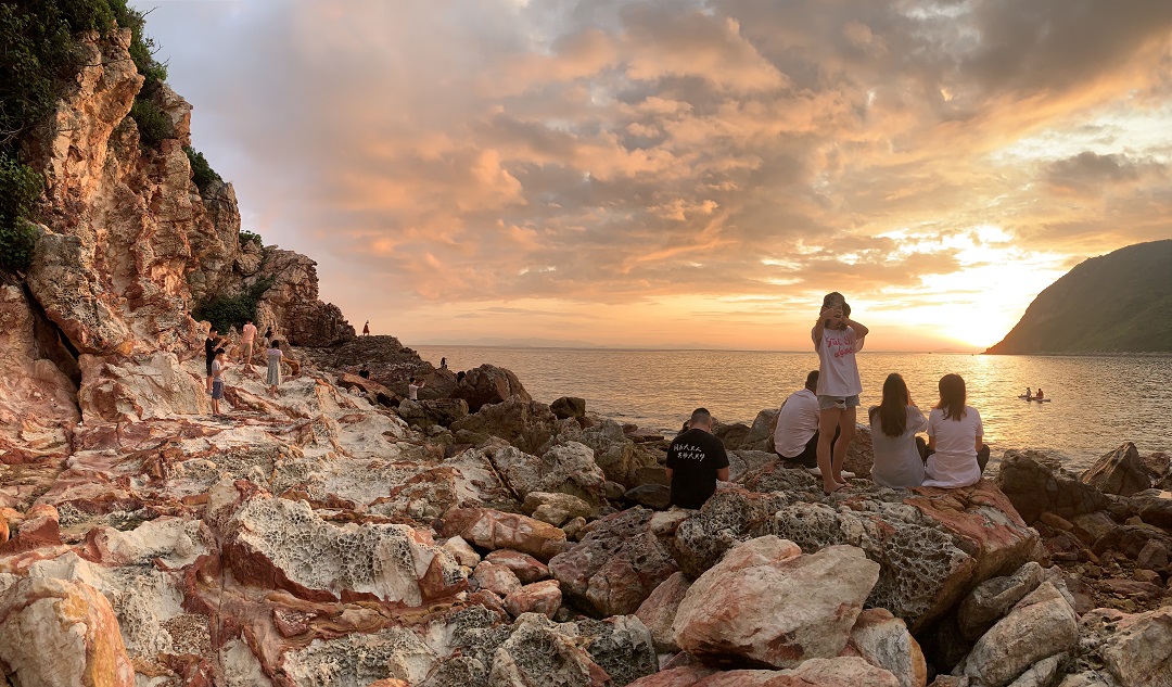 04:30 起床,然后跟随领队一起登海誓山盟峰看日出,探秘防空洞,徒步相思湖畔。这个穿越线路比较休闲,难度不大,但是也要穿好徒步鞋哦(禁止拖鞋登山)。徒步经过三门岛度假村,过了度假村后,后面一段基本上游人稀少,路上山径幽静,空气清新迷人;(不想登山的朋友们可以在沙滩看日出,感受清晨宁静的海滩。吹着海风,踏着海浪在沙滩上嬉戏。记得穿上漂亮的衣服,拍美照。)