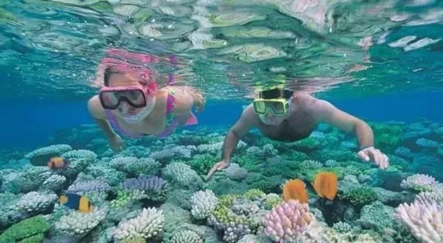 浮潜不是潜水,而是使用一个潜水镜,呼吸管漂浮在水面的一种运动。浮潜能让大家欣赏奇妙的海底世界,不用每次都抬头换气,靠着呼吸管和潜水镜你就能在水中长时间过足瘾去看鱼类、螃蟹、海螺、海胆等!不会游泳的朋友只需带好救生工具(泳圈、救生衣等)就可参与此活动!